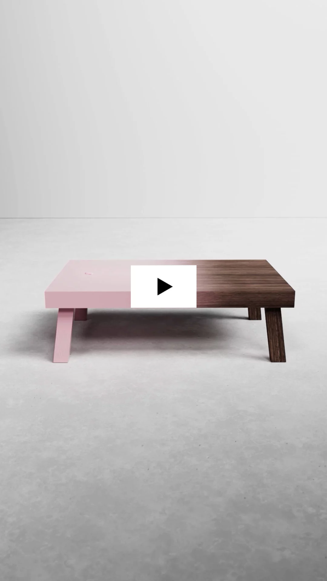 Made of American walnut, the “Niebla” table is coated in a lacquer that fades gradually from natural wood to a delicate rose pink. In his animation, Amaury evokes this transformation through the poetic gesture of a falling petal, which gently lands on the surface and infuses it with colour — a nod to Jongerius’s ongoing exploration of colour as a material in its own right.
