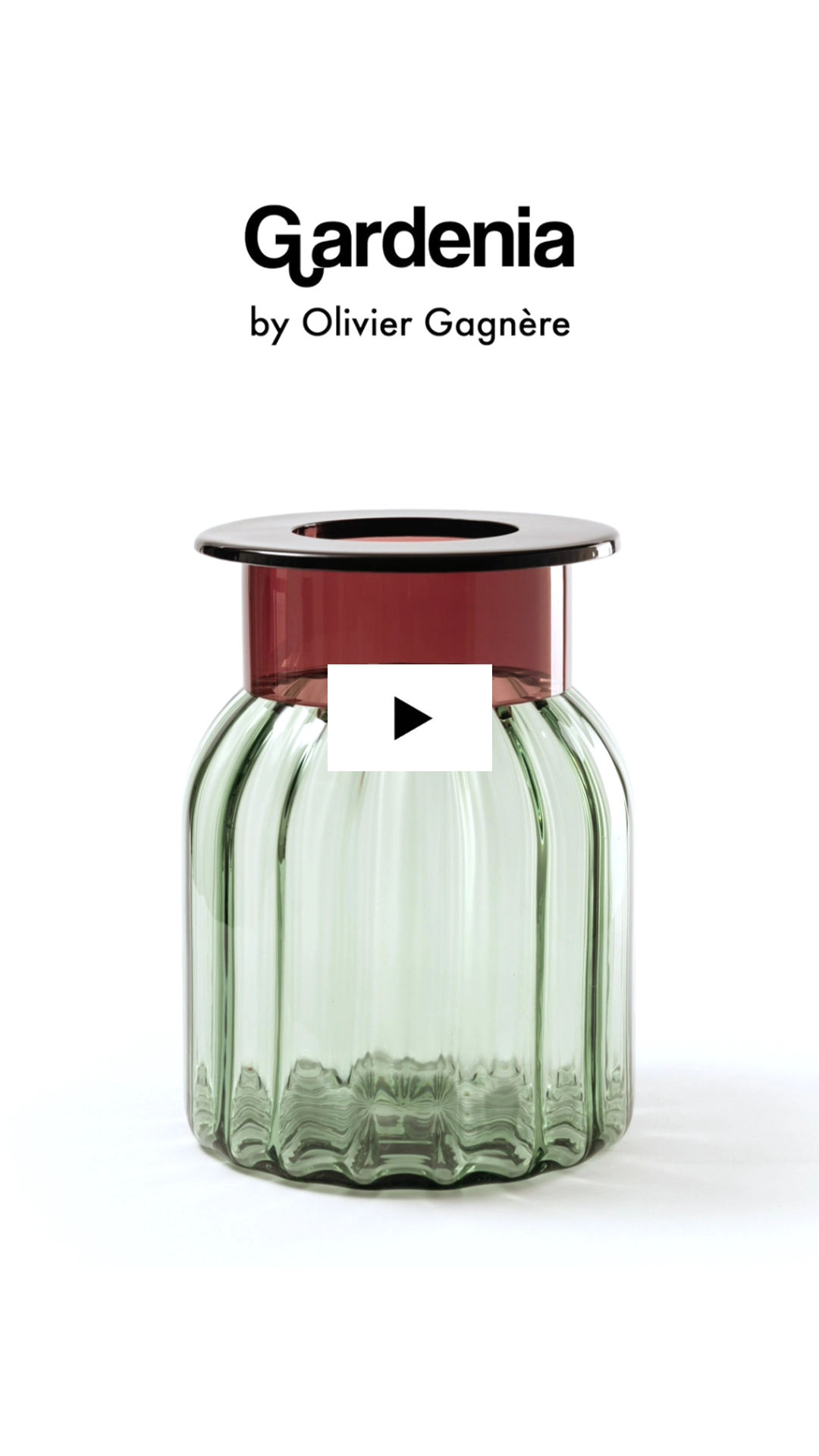 Forming part of Gagnère’s new collection of mouth-blown vases, conceived in Murano, the “Gardenia” vase is defined by its round contours and delicate hues — deep and light pinks, alongside a serene blue-green reminiscent of water. Hugo's animation captures the vase in motion, showcasing its flower-like shape and organic colours from various angles.