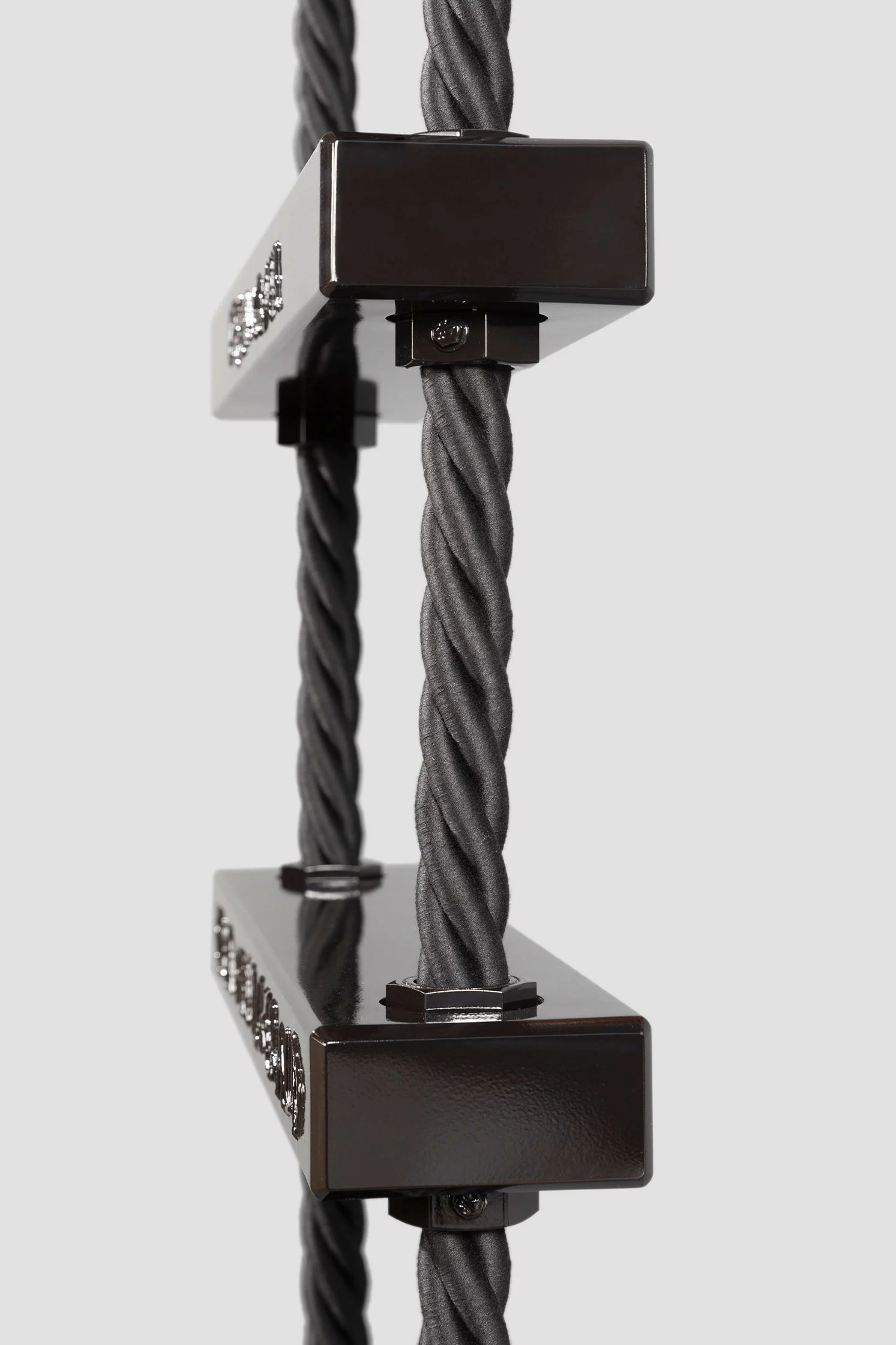 Rope, glossy lacquered stainless steel and aluminium.Colors to choose between: fluo red, traffic black or cloud white.Names on the rugs to be chosen from the collection of personalities proposed by Virgil Abloh:- RZA- Aaliyah- Soulja Boy- Kelis- Miles Davis- Larry Levan- Fela Kuti- Ella Fitzgerald- Akua Njeri- Alice Coltrane- Ghostface Killah- Michael Jordan- Lauryn Hill- Stevie Williams- Elaine Brown- Kool Herc- Malcom X- Eve- Michael Jackson- Dondi- Erykah Badu- Roc Raida- PHASE 2- Morgan Freeman- Lil Kim- Grand Mixer DXT- Pop Smoke- Serena Williams